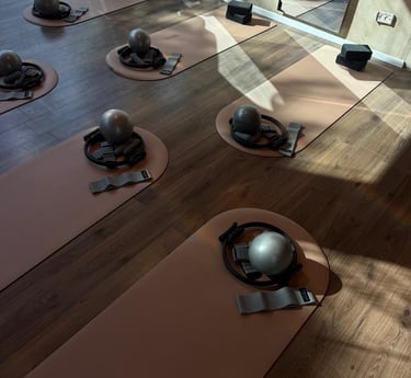 פילאטיס, מזרנים ויוגה באווירה ביתית ומרגיעה.